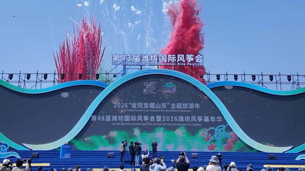 第43屆濰坊國際風(fēng)箏會暨2026濰坊風(fēng)箏嘉年華開幕 現(xiàn)場化作風(fēng)箏海洋#你好世界風(fēng)箏都